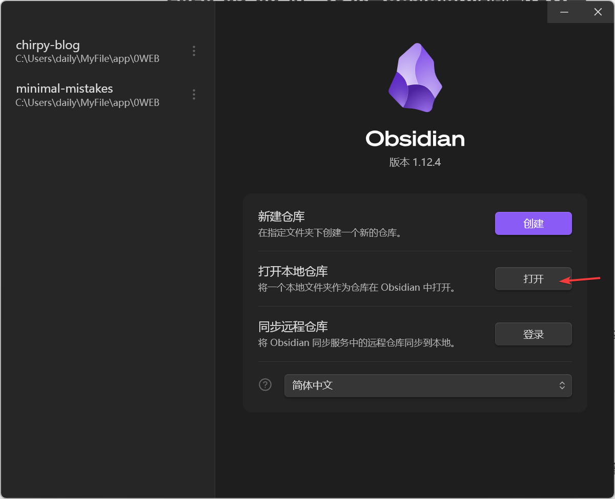 恰好,obsidian能同时满足以上两个要求. 所以, 如果你希望自己的写作流程高效, 请像我一样, 使用obsidian. obsidian 安装完成之后, 打开你clone的博客仓库