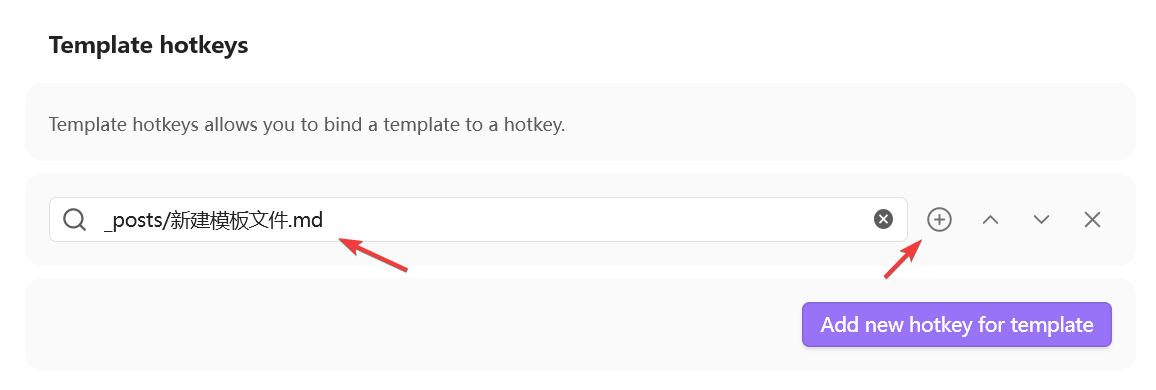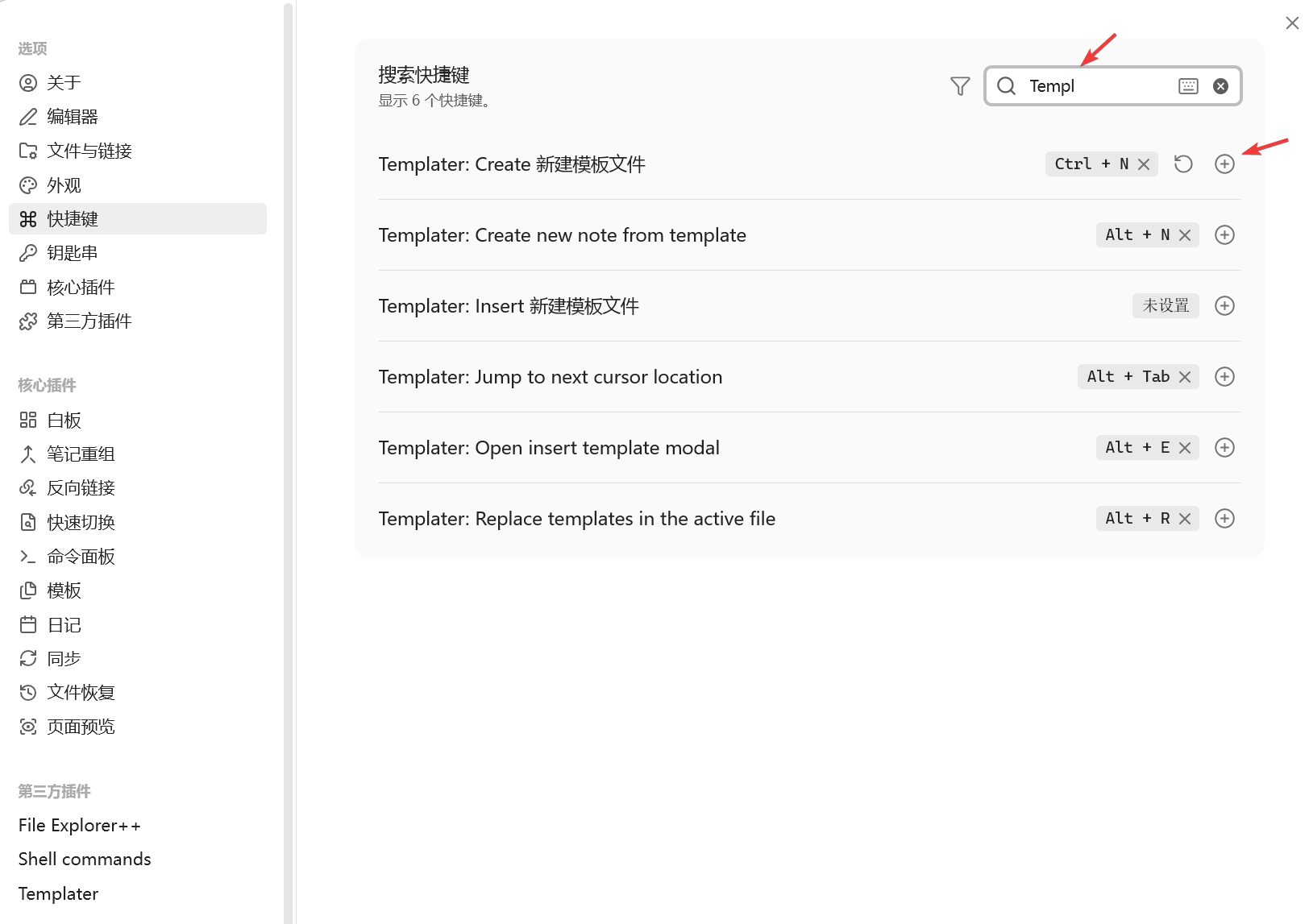 选择刚刚创建的模板, 点击+配置快捷键, 搜索Templ等字样便于过滤结果, 点击+分配快捷键.